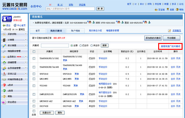 第一步:登錄會(huì)員中心,進(jìn)入會(huì)員中心-增值服務(wù)管理-競價(jià)排名-我的關(guān)鍵詞