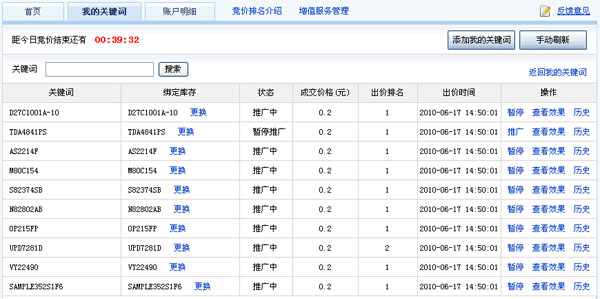 2、在我的關(guān)鍵詞頁面,可以查看我競價(jià)的關(guān)鍵詞.